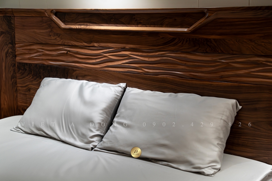 Từng chi tiết của giường đều được thực hiện bởi đội ngũ thợ thủ công lành nghề của Việt Á Đông, đảm bảo độ chính xác cao, bề mặt xử lý mịn màng và màu sắc hài hòa tự nhiên. Sản phẩm được phủ lớp bảo vệ thân thiện, giữ nguyên vẻ đẹp tự nhiên của gỗ óc chó mà vẫn đảm bảo độ bền và dễ dàng vệ sinh.