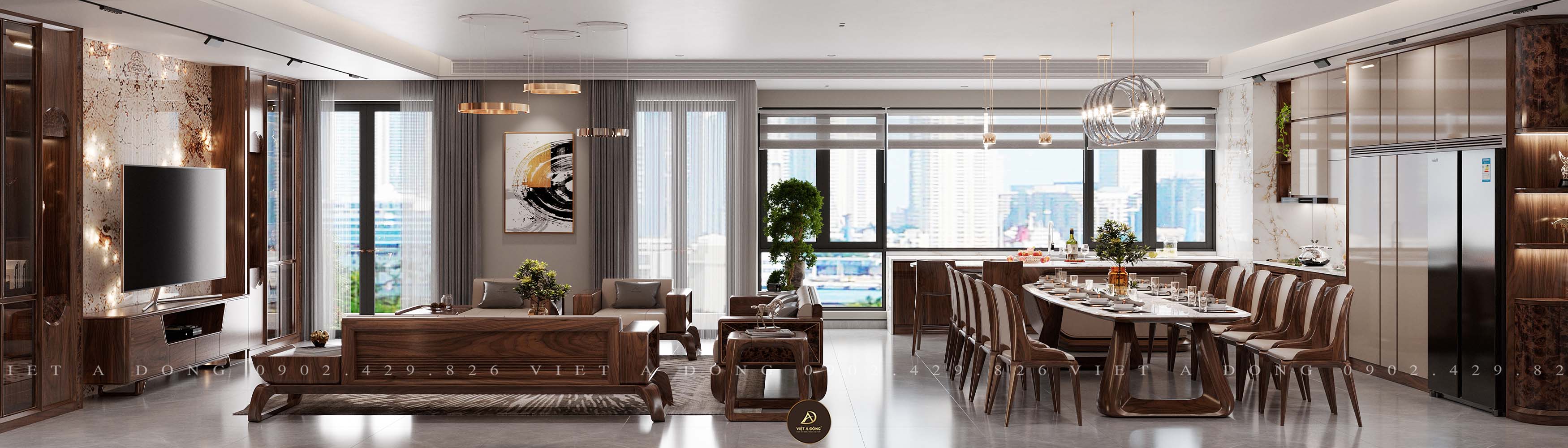 Thiết kế thi công nội thất biệt thự gỗ óc chó KĐT Thành phố Giao Lưu