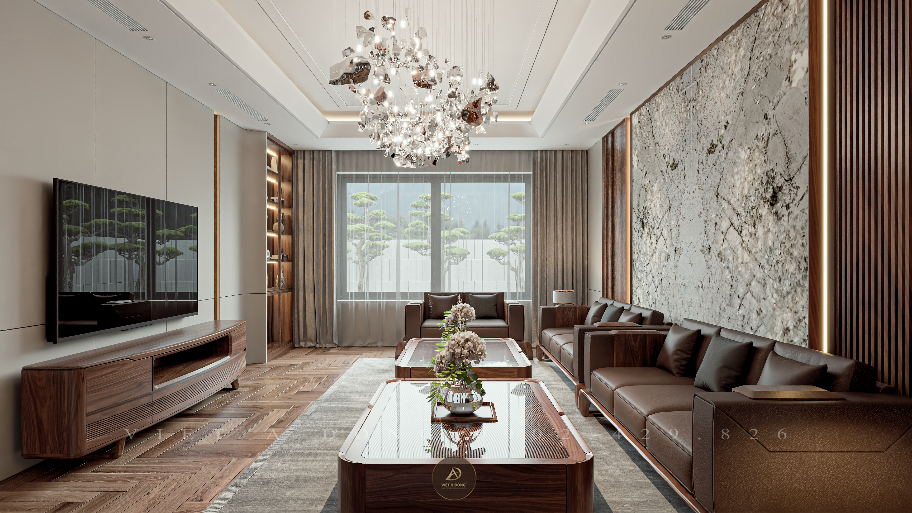 Phong cách Á Đông hiện đại, kết hợp hài hòa giữa nét đẹp truyền thống và tiện nghi hiện đại.