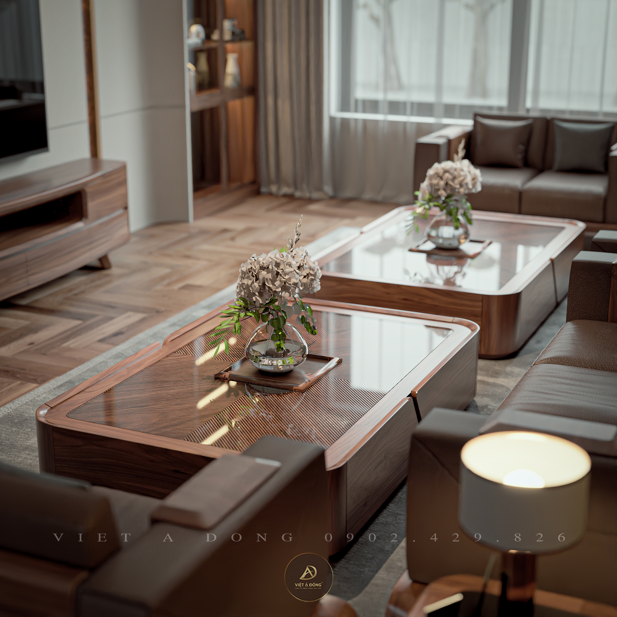 Bàn trà đồng bộ: Dài 1m5 x Rộng 1m x Cao 50cm